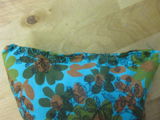 Next, turn the fabric right sides out and stuff with pillow fill. It should now look like this: